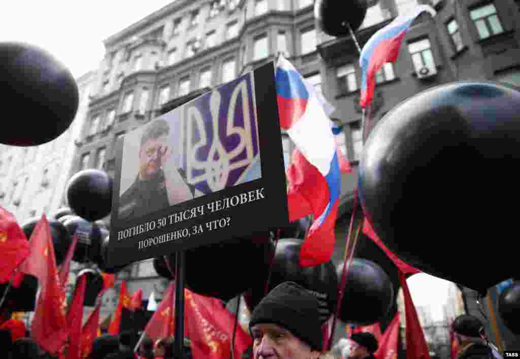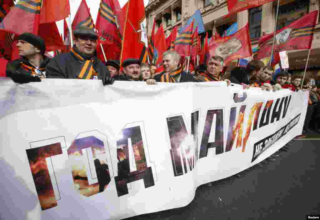 В Москве состоялось шествие движения "Антимайдан" под девизом "Год Майдану. Не забудем, не простим!", приуроченного к годовщине смены власти в Украине. 21 февраля 2015