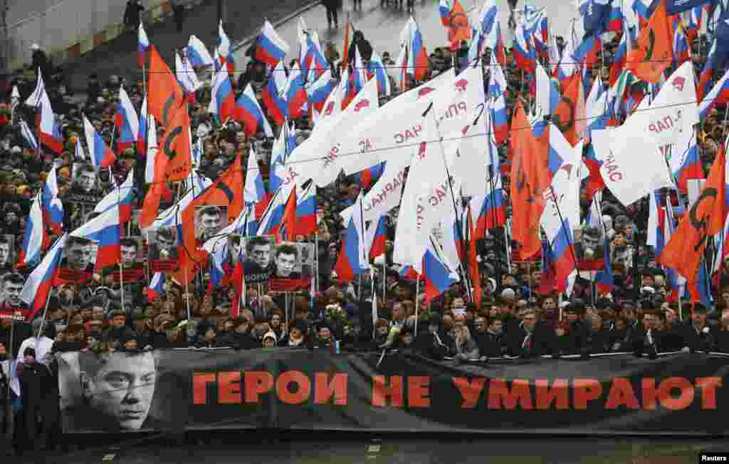 В Москве прошел многотысячный марш памяти убитого оппозиционного лидера Бориса Немцова. Лучшие кадры - в фотогалерее "НВ". О самом шествии можно прочесть в
