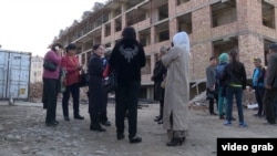 "Бывали случаи, когда нас выгоняли но мы все равно заходили, - рассказывает обманутая дольщица Майрам Шаршенкулова. - Бывали случаи, когда он охраннику приказывал выгнать нас. Я в тот раз пришла с дочкой, а он говорит: выкиньте их на улицу!"