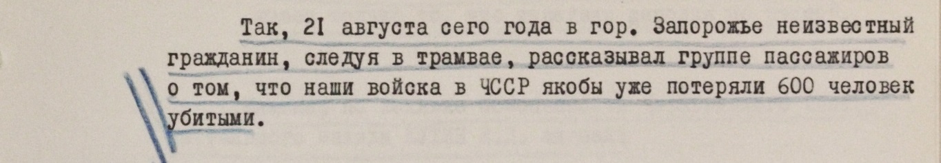 Например, в первый же день операции, 21 августа, в Запорожье какой-то мужчина рассказал, что в ЧССР уже погибли 600 советских военных.