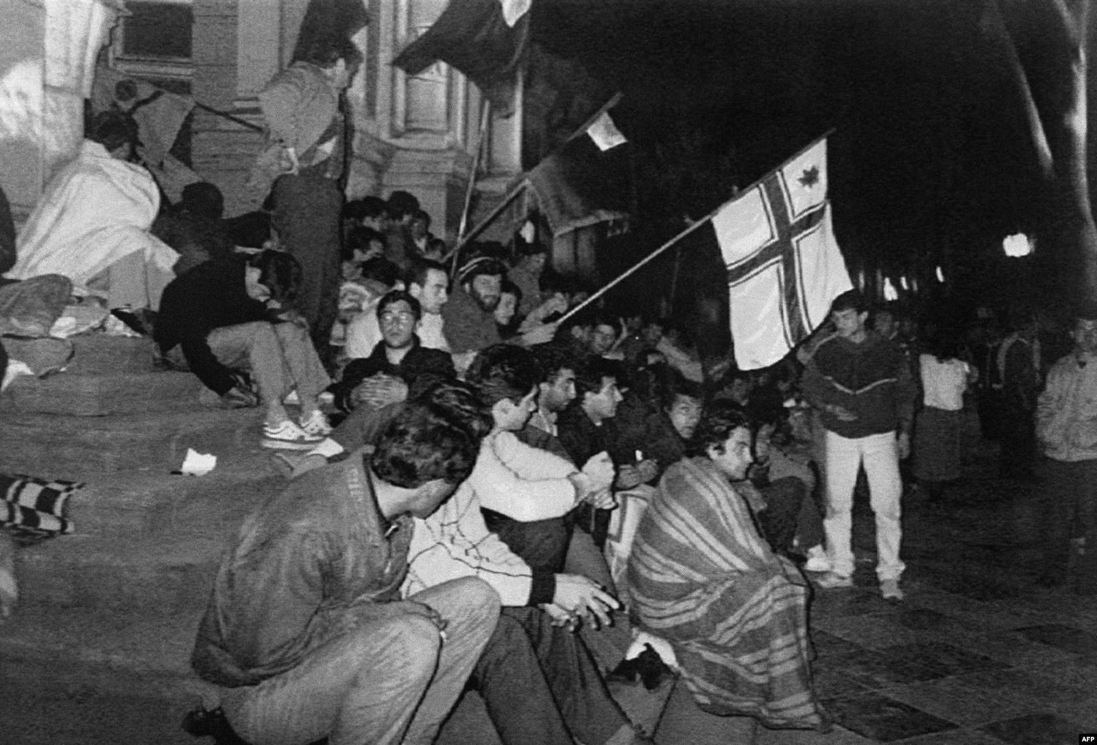 В ноябре 1988 года на центральной площади Тбилиси представители Национал-демократической партии во главе с лидером Георгием Чантурией объявили голодовку. Они требовали сохранить в Конституции право на выход союзных республик из состава СССР: разговоры об упразднении этого права в то время начались в Москве.
