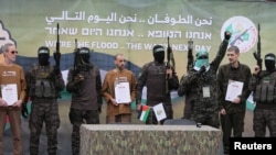 Перед тем как передать освобожденных заложников Красному Кресту члены ХАМАС вывели их на сцену. На фотографиях мужчины, которые находились в плену 491 день, выглядят сильно похудевшими.