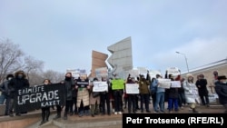 У монумента "Рассвет свободы" на акцию, организованную движением Oyan, Qazaqstan, тем временем собрались несколько десятков молодых людей. Они держали в руках плакаты с политическими лозунгами – "Не забыть 1986 2011", "Вместо Колбина уже свои, но нам не легче", "16 декабря отбирают жизнь, 10 января – мой голос", "ВыВоры2021". Ранее представители прокуратуры предупредили участников митинга, что акция не санкционирована.