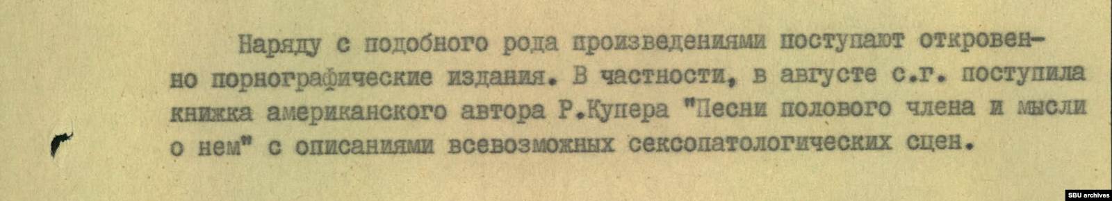 В КГБ были уверены: Запад, желая развалить СССР, использует для развращения советских людей не только рок-музыку и фильмы, но и книги. Настоящее Время публикует найденный в архиве Службы безопасности Украины обзор идейно вредной литературы конца 1970-х.