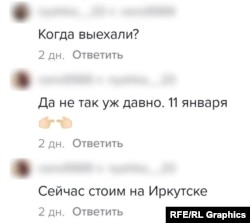 Пользовательница тиктока из города Завитинск Амурской области, написавшая в комментарии, что ее единственный сын уезжает "в командировку на границу России", уточнила в переписке с Радио Свобода, что военные эшелоны отправлялись три дня подряд – с 9 по 11 января. Их прибытие "под Брянск", по ее словам, ожидается к концу месяца: