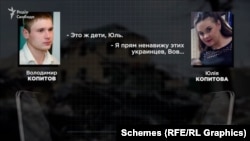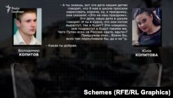 Голос женщины на записях СБУ, как установили "Схемы", принадлежит гражданке России Юлии Копытовой. Она, находясь в РФ, говорит со своим мужем, который на момент разговора воевал в Украине.