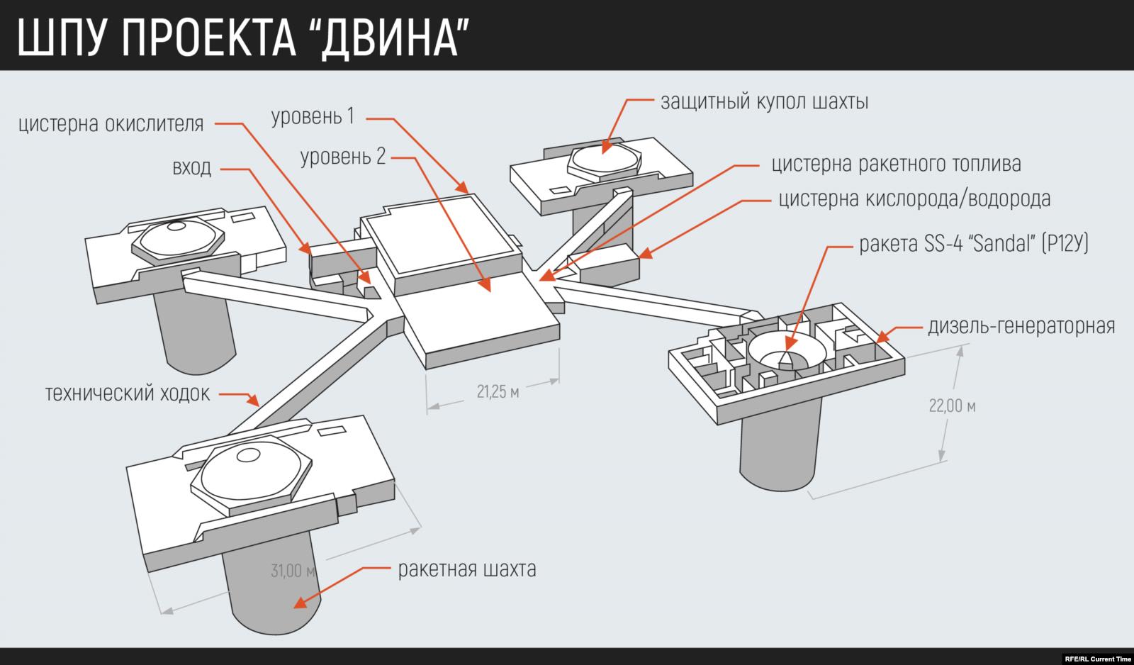 В 1960-х на вооружение советской армии поступили ракета Р-12У. Они базировались в шахтном комплексе группового старта "Двина".